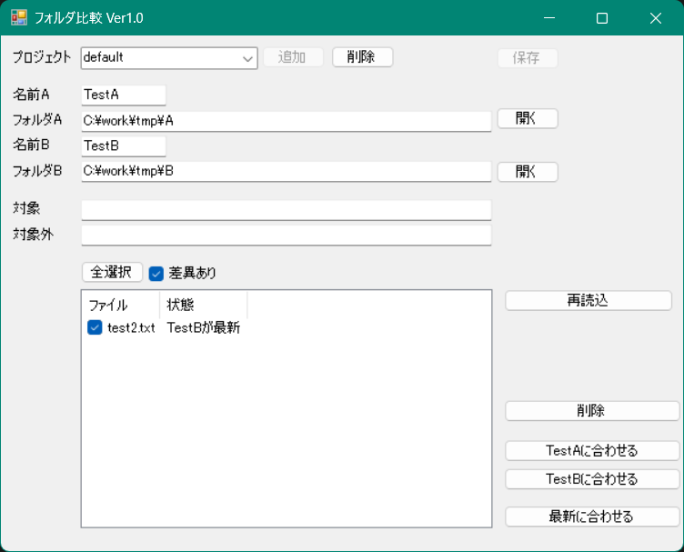 2つのフォルダを比較して差異がある場合、コピーを行うソフトです。
